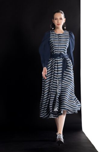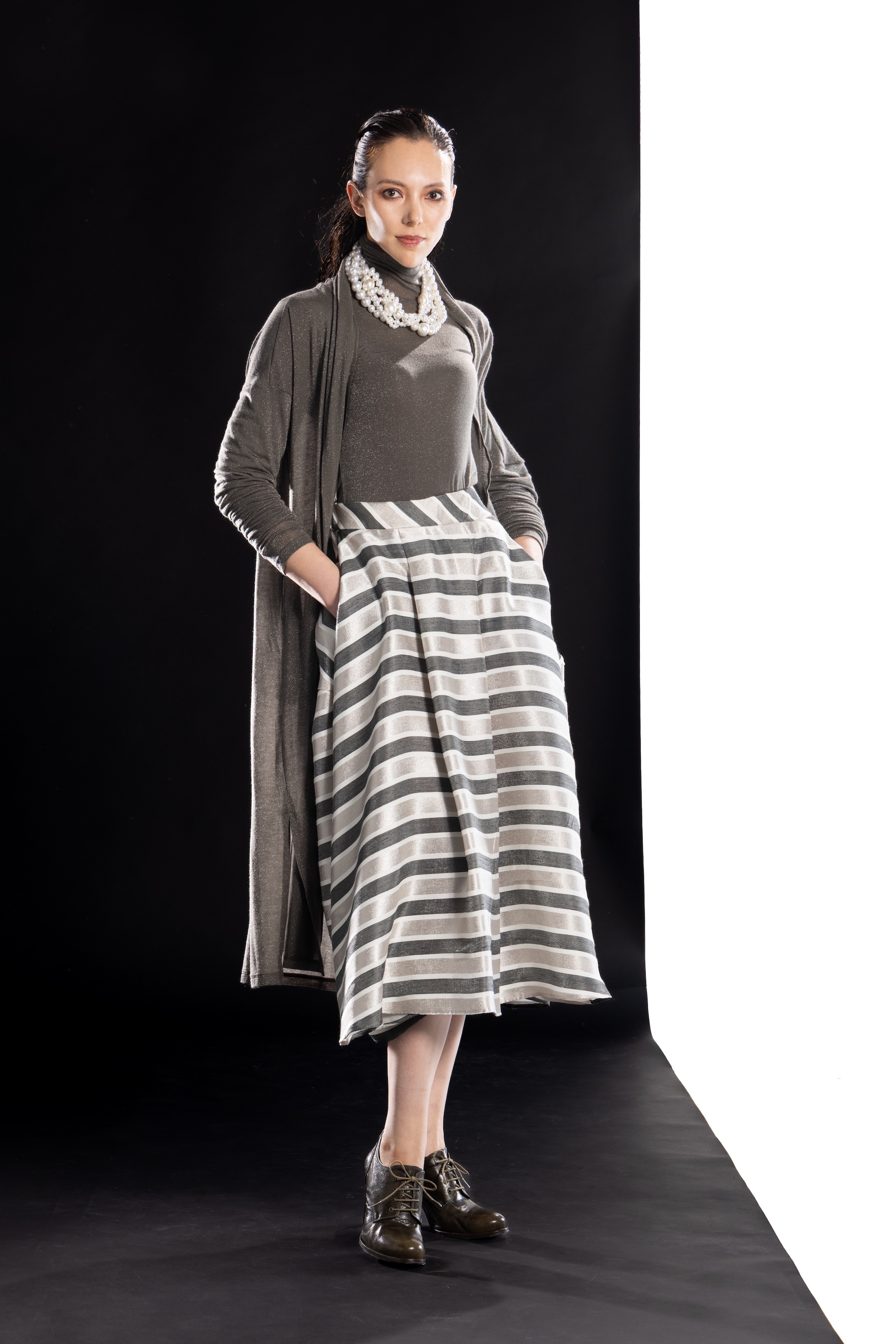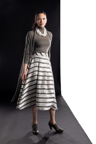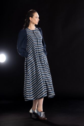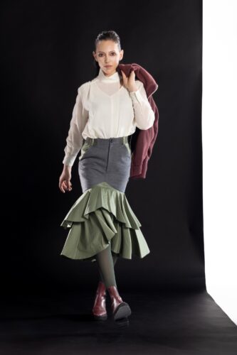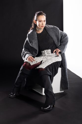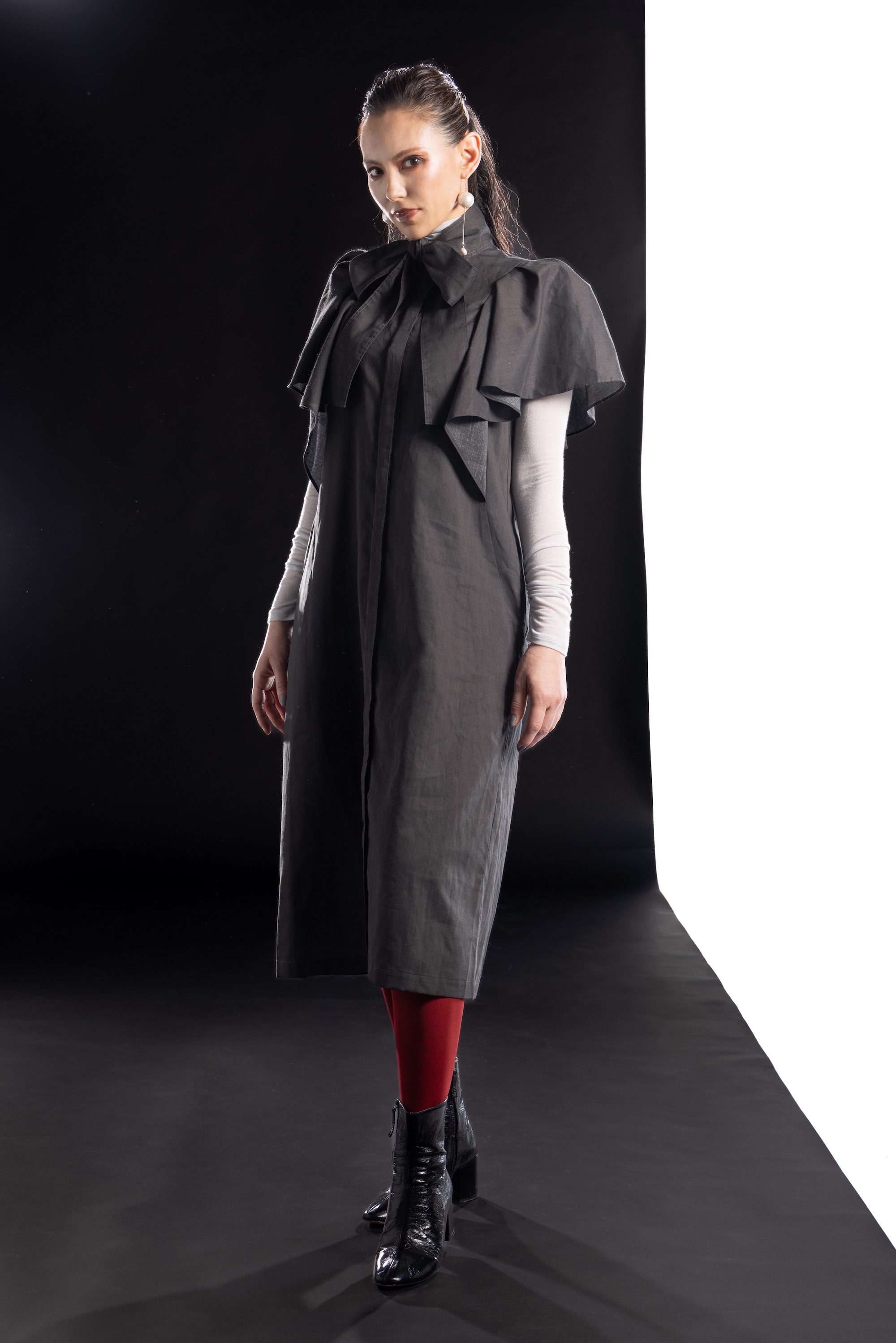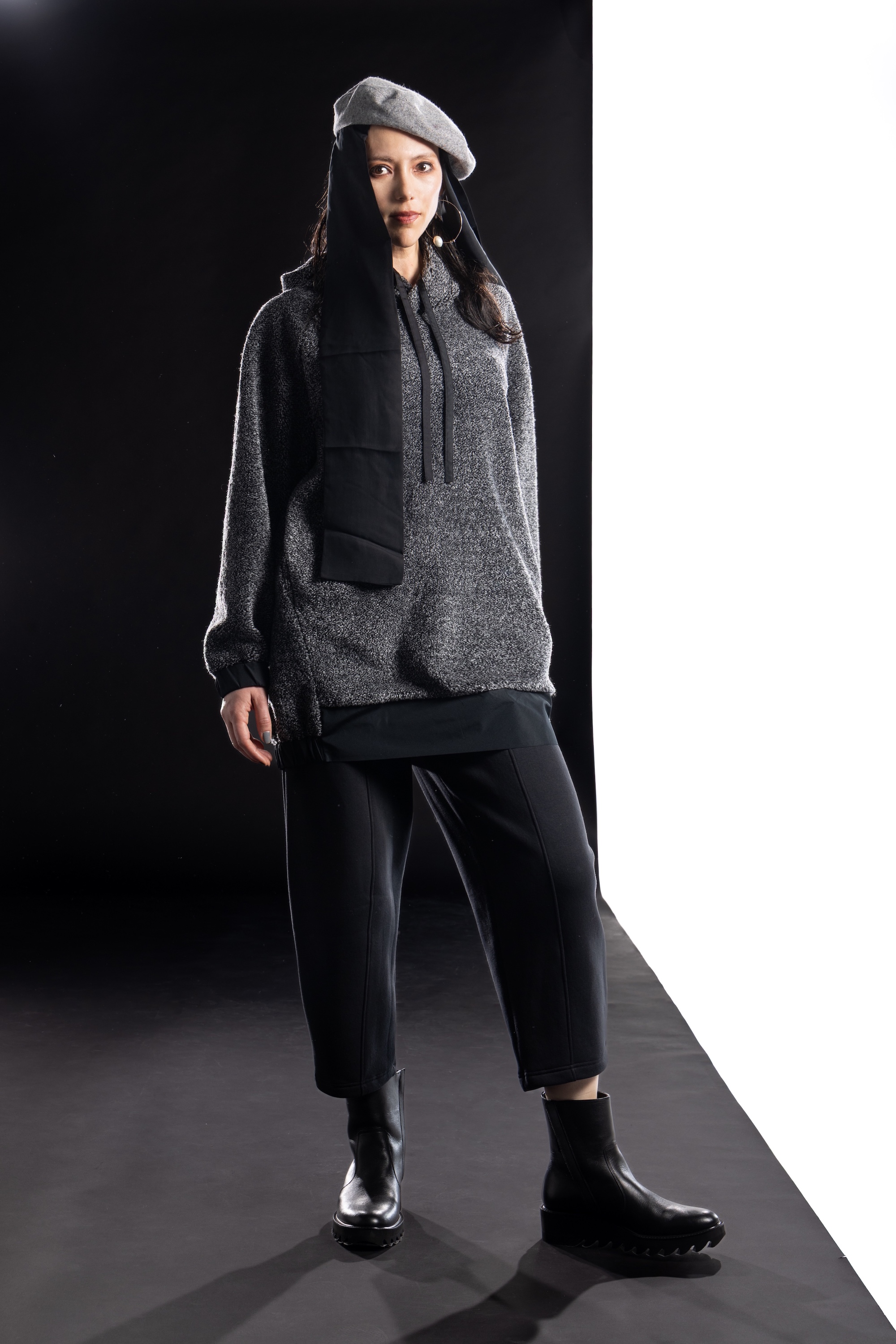 変化と移行を象徴する曲線的な形を通じて、時間や心の動きを表現します。 始まりと終わりをつなぐ過程として、成長や変化をし、季節や素材、シルエットの移り変わりを反映したデザインが、内面的な成長を表現します。 また、弧は時間や空間の移動を象徴し、未来的なテクスチャーとクラシックなデザインの融合により、異なる時代や文化が交錯し、過去と未来をつなぐ架け橋となる。